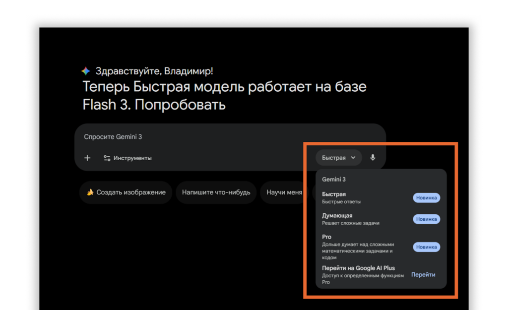 - Flash — думает быстрее и выдает ответы почти мгновенно. Подходит для задач, где важна скорость реакции: чат-боты, быстрые правки текстов, генерация идей в реальном времени.