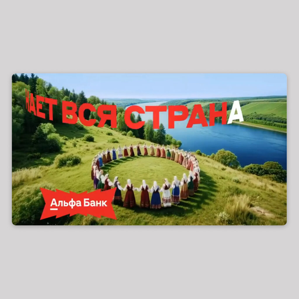 Видеоролик Альфа-Банка и Пятерочки. Компании сыграли на актуальной теме патриотизма и популярности Надежды Кадышевой и сняли рекламное видео в традиционно русском стиле — ход удался.