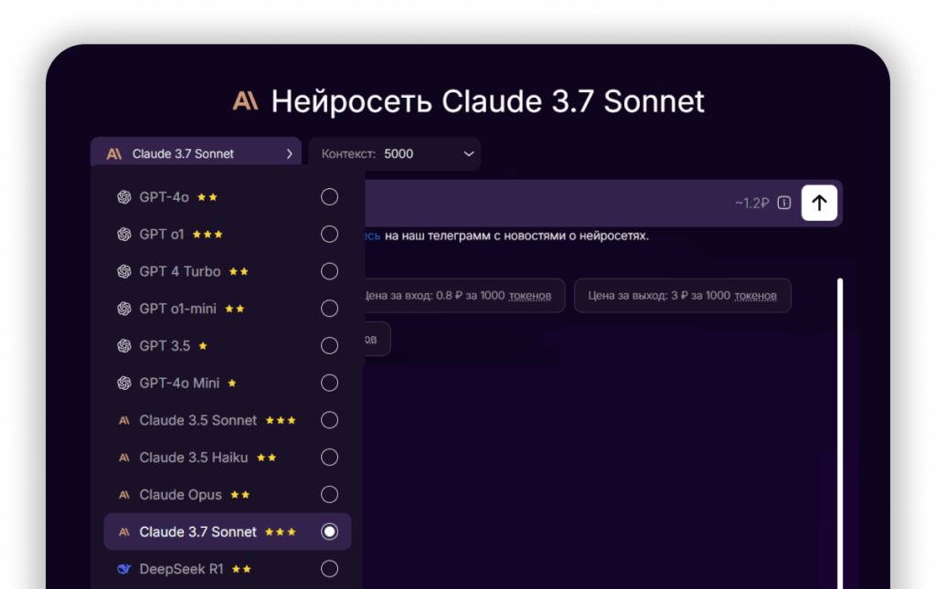 Сервис-агрегатор нейросетей: в одном интерфейсе объединяет все популярные ИИ. Среди них: ChatGPT, Claude, DeepSeek, визуальные Midjourney, DALL-E и не только. Благодаря этому не придётся регистрироваться сразу на нескольких сайтах или подключать VPN, чтобы ими воспользоваться.