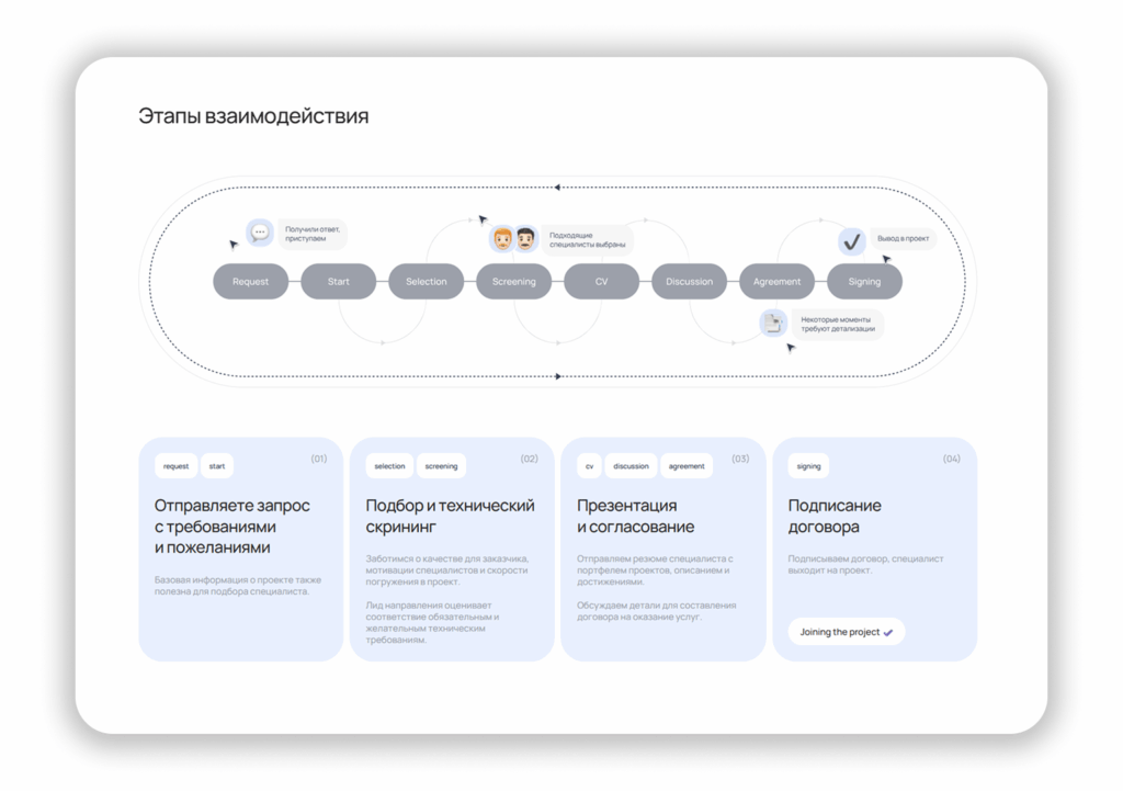 1. Репутация и опыт. Покажите, какие задачи вы уже решали, каких результатов достигли в ходе работы. Не давайте сухие цифры или абстрактные формулировки, подкрепляйте всё конкретикой — объясняйте, что эта информация значит для потенциального клиента.
