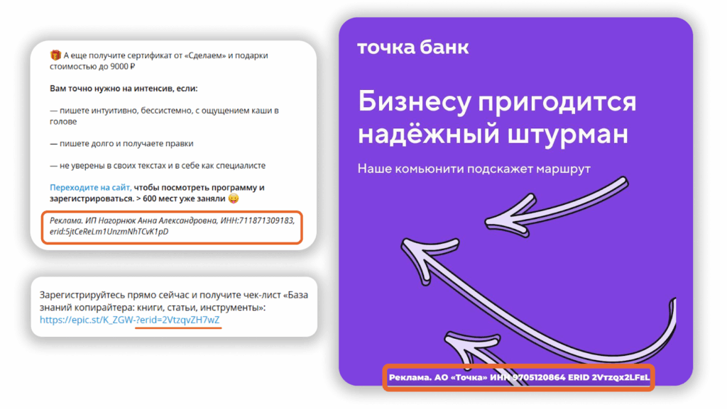 1. Зарегистрируйте объявление в ОРД (операторе рекламных данных). Обычно это делает рекламодатель, но иногда и владельцы каналов. После регистрации система выдаст уникальный токен ERID.