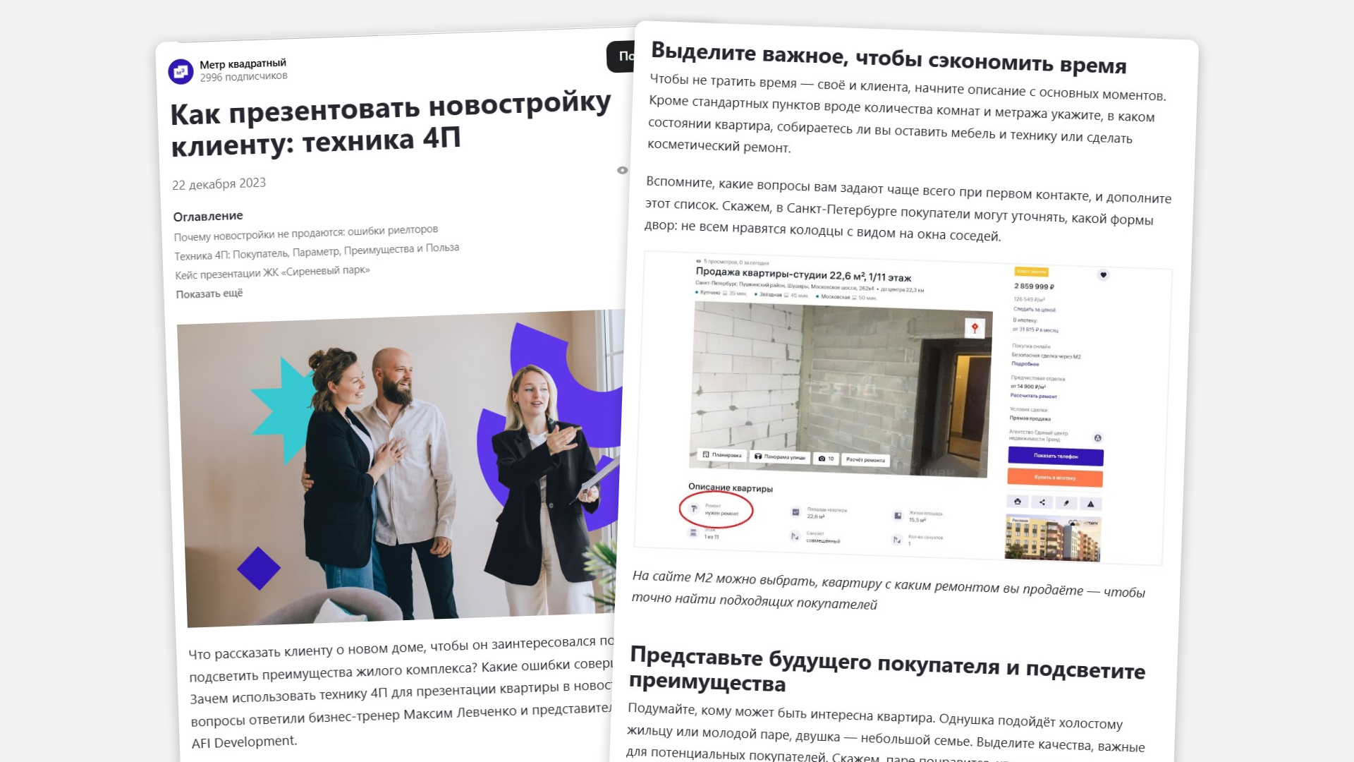 Блог в Дзене направлен на другую аудиторию — риелторов, которые используют сервисы М2 в своей работе. Для них мы писали статьи с прогнозами по рынку и изменениями в законах, делились кейсами, давали советы по софт и хард скиллам.