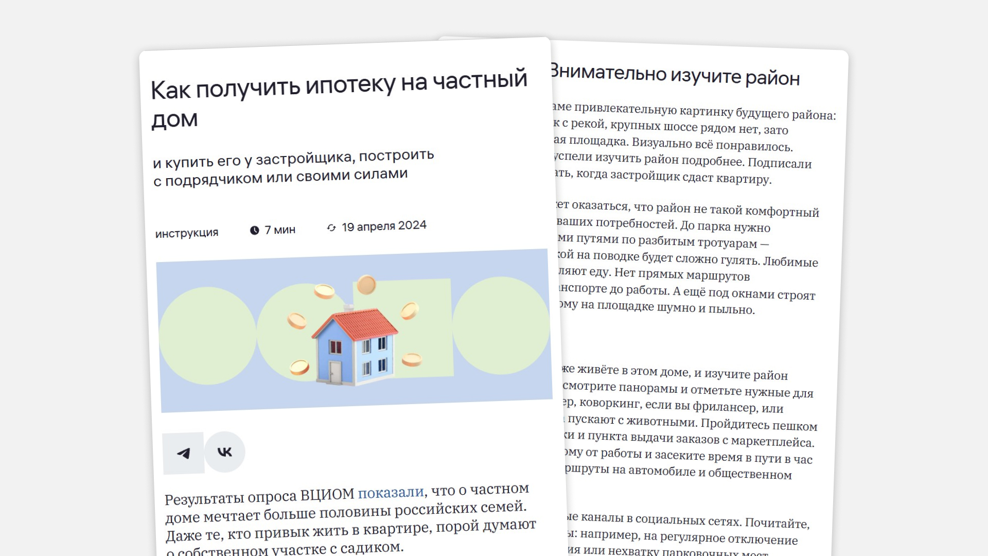 С осени 2023 года ведем блог для физических лиц. Рассказываем, как выбрать квартиру или построить дом, проверить продавца на юридические риски, оформить ипотеку на выгодных условиях, провести сделку онлайн и обустроить жильё.